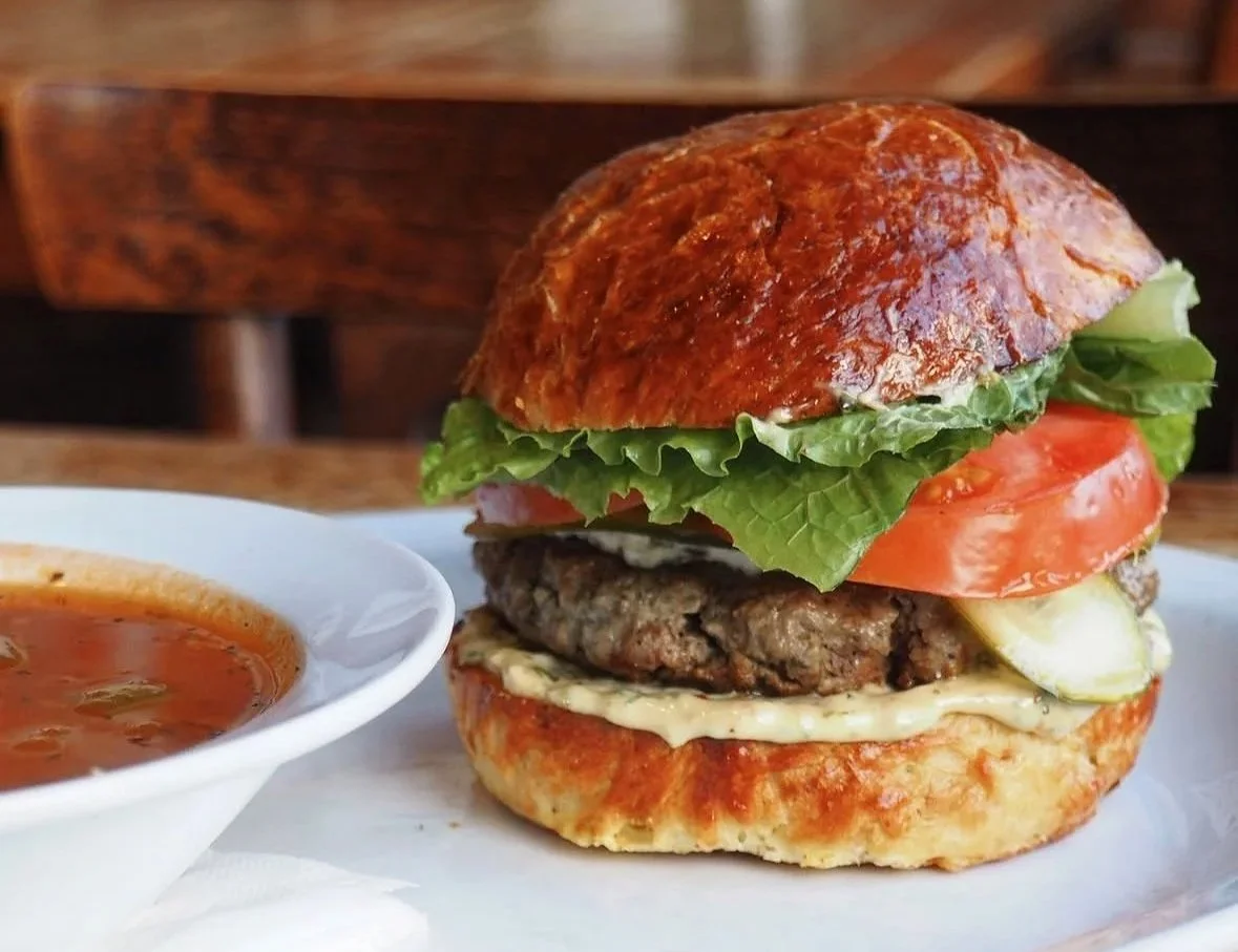 Beef patty, sautéed jalapeños and mushrooms, caramelized onions, lettuce, Swiss cheese, Tabasco honey lime mayo, house-made brioche bun and your choice of side.